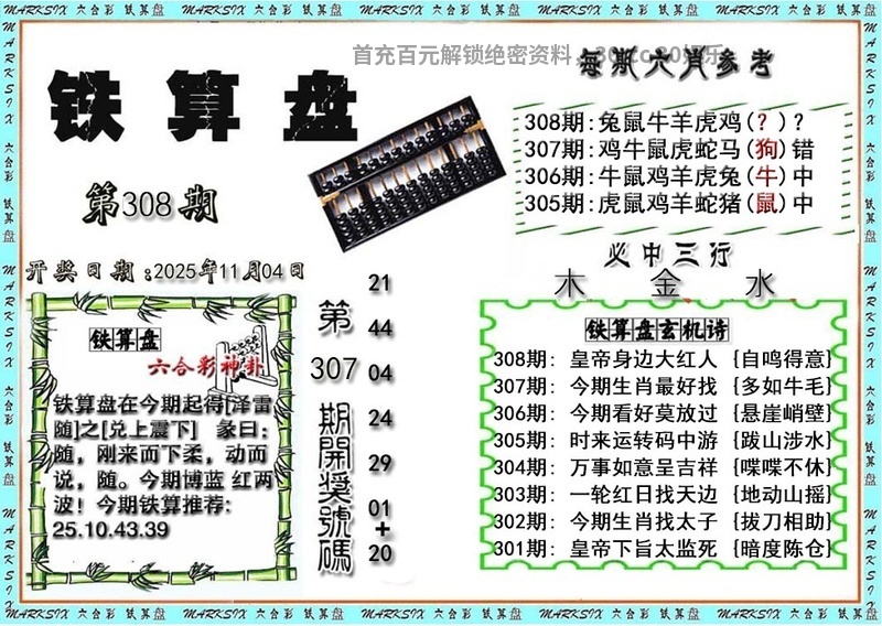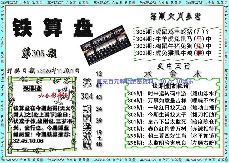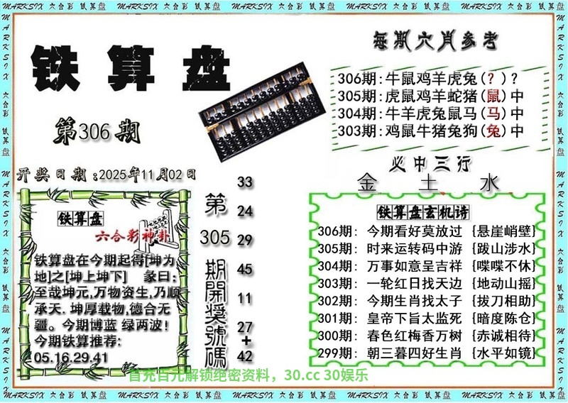 | 305期:精选三行❤️【水金土】开:鼠42准 |